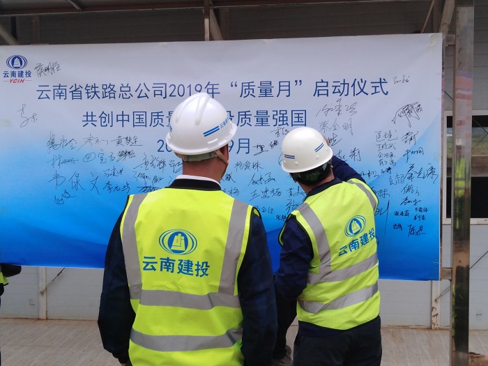 9月20日,在迎來(lái)全國(guó)第42個(gè)“質(zhì)量月”之際,云南省鐵路總公司2019年“質(zhì)量月”活動(dòng)啟動(dòng)儀式在聯(lián)合股份公司武倘尋高速公路九龍?zhí)卮髽蝽?xiàng)目如期舉行??偣景嘧映蓡T出席活動(dòng),各子公司、直管部主要領(lǐng)導(dǎo)及質(zhì)量負(fù)責(zé)人、相關(guān)人員共100余人參加了本次啟動(dòng)儀式。