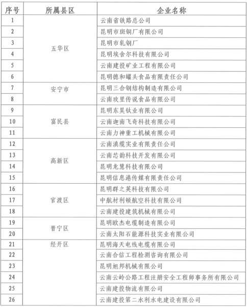 2019年昆明市企業(yè)技術(shù)中心企業(yè)名單